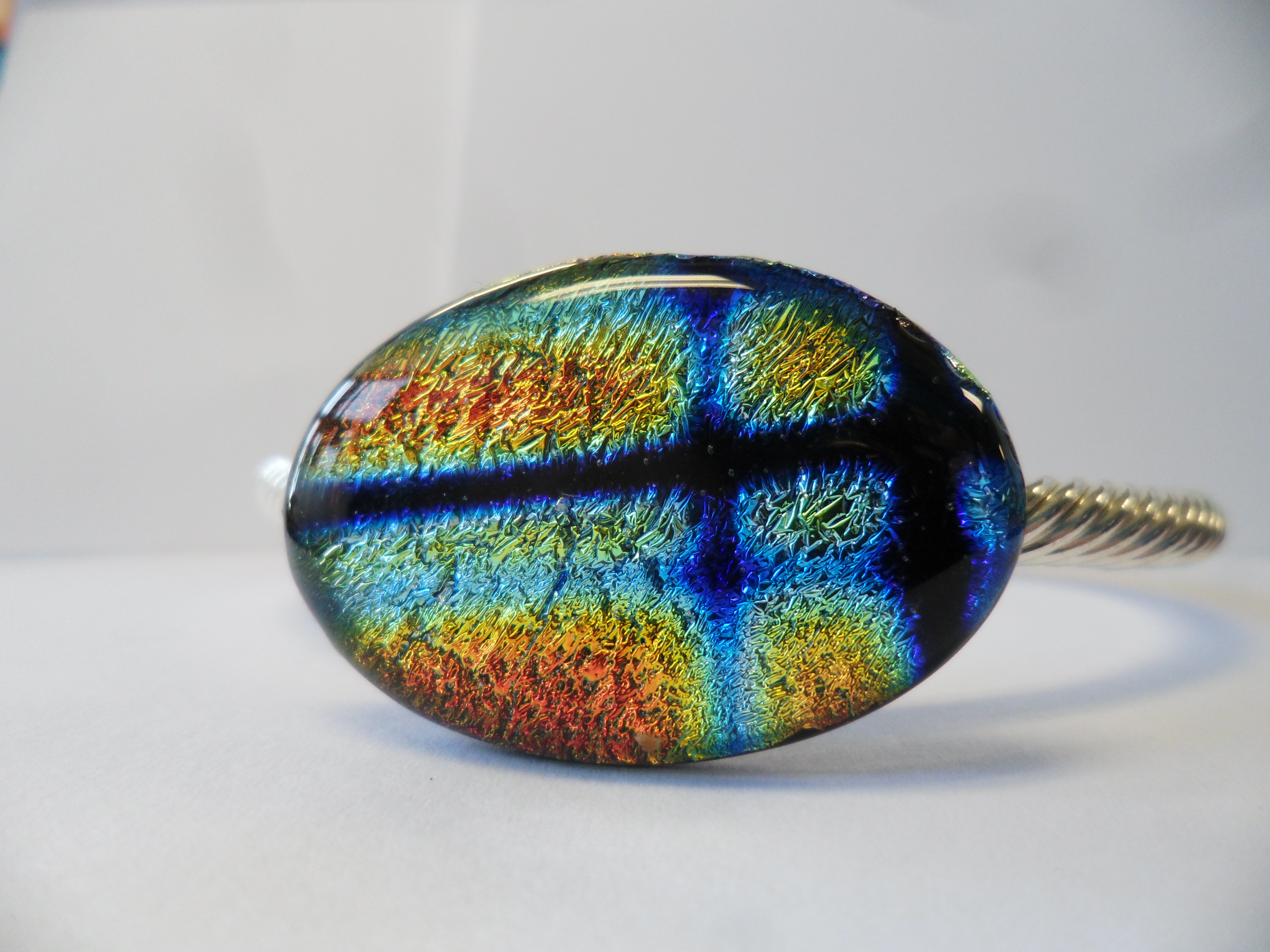 Cynthia Gillespie is an artist located in Kansas City, MO. Her jewelry pieces are made using dichroic glass and fired in her studio. She creates dinnerware and decorative pieces as well as one of a kind silk scarves and mixed media designs.