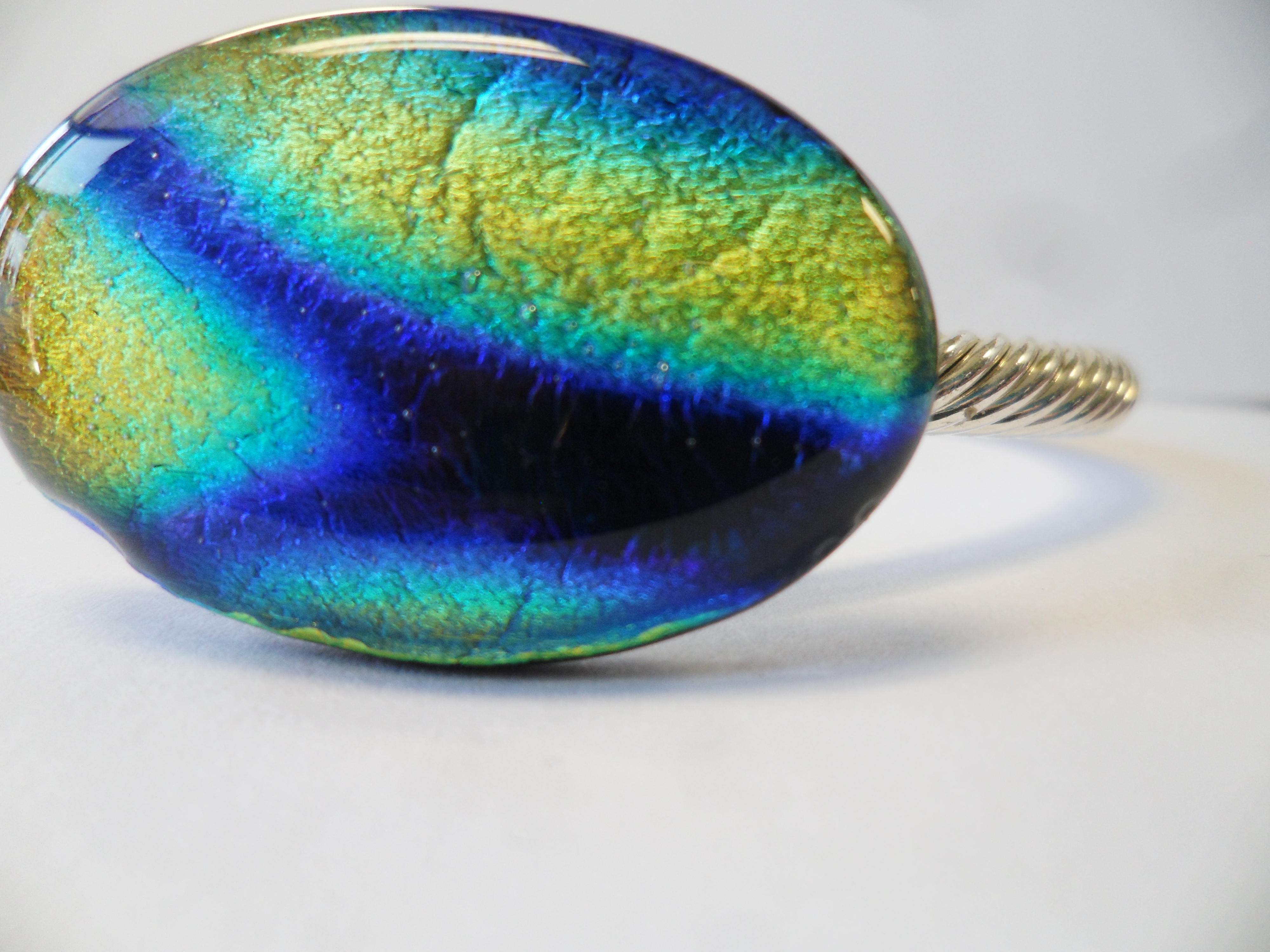 Cynthia Gillespie is an artist located in Kansas City, MO. Her jewelry pieces are made using dichroic glass and fired in her studio. She creates dinnerware and decorative pieces as well as one of a kind silk scarves and mixed media designs.